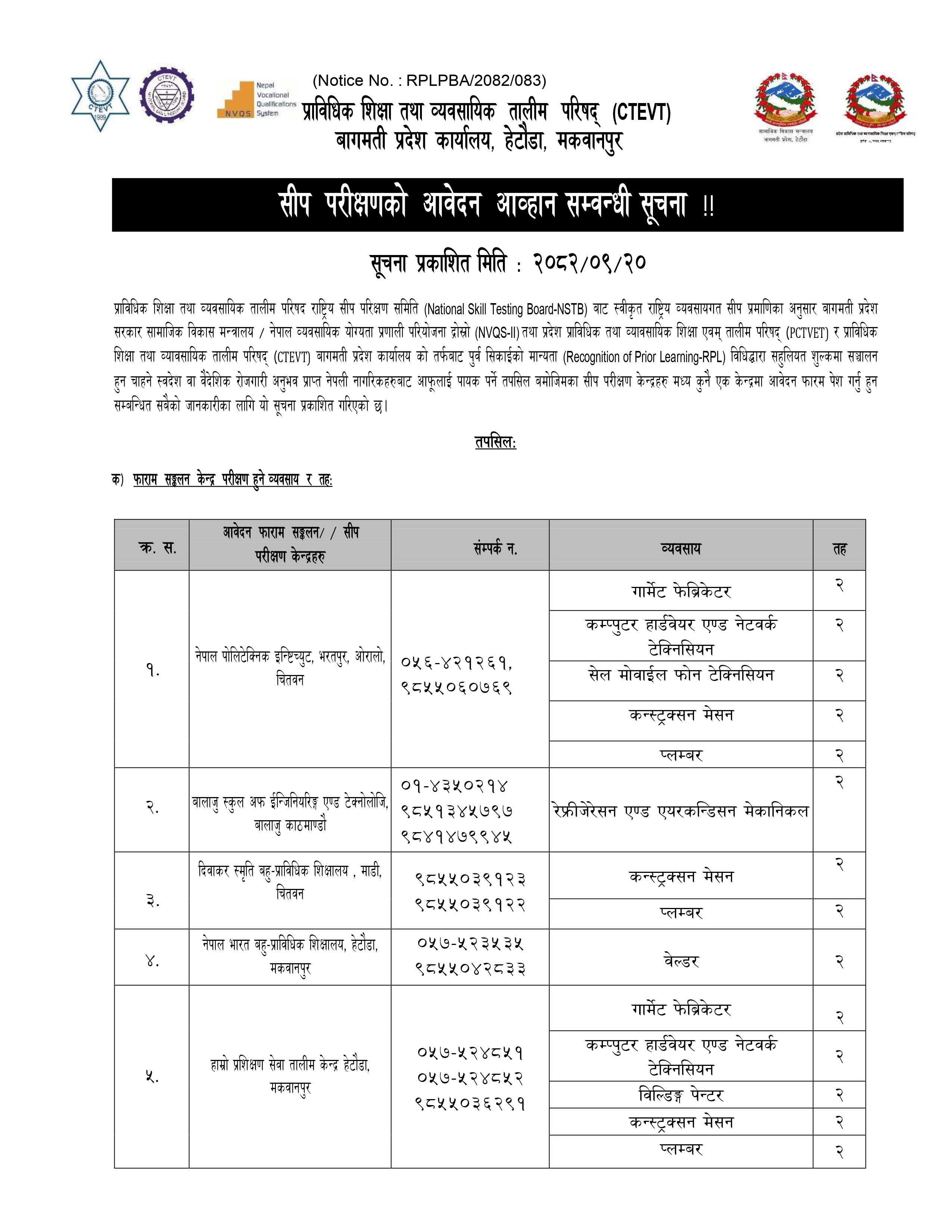 सीप परिक्षण आवेदन आव्हान सम्बन्धी सूचना ।